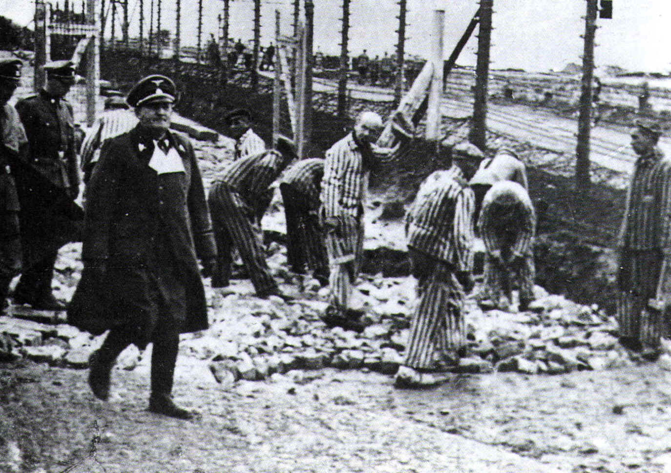 Un officier SS et des déportés de Mauthausen, en février 44.