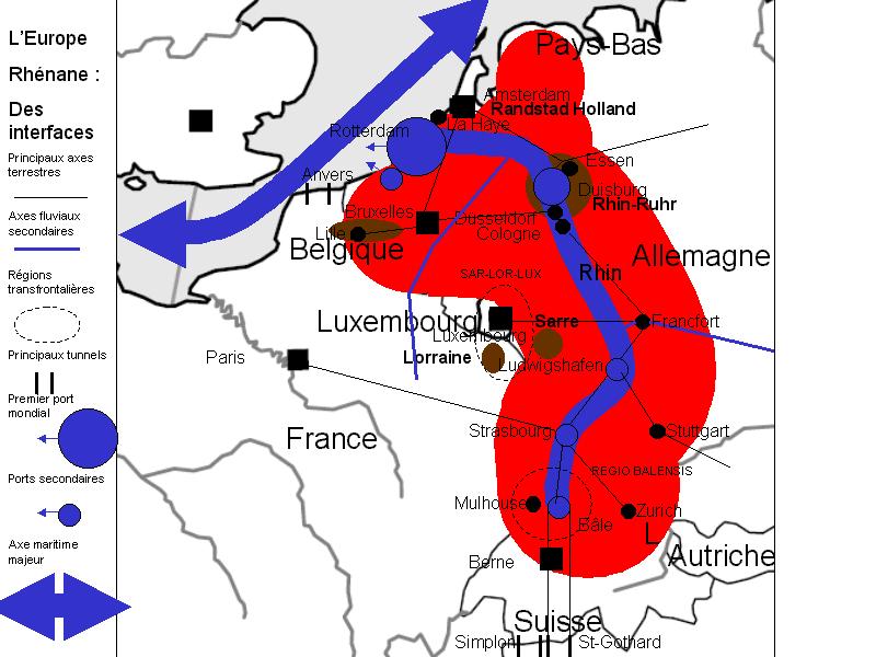 L'Europe Rhénane : un axe , un coeur, des centres, des interfaces.