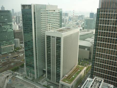 Quartier d’affaires Mitsubishi ( trois diamants symboles de la firme) du de la tour Marunouchi (36 étages) symbole de la firme qui depuis la fin du XIXième siècle est un conglomérat devenu kereitsu , multinationale dont la puissance repose sur la diversification des activités.
