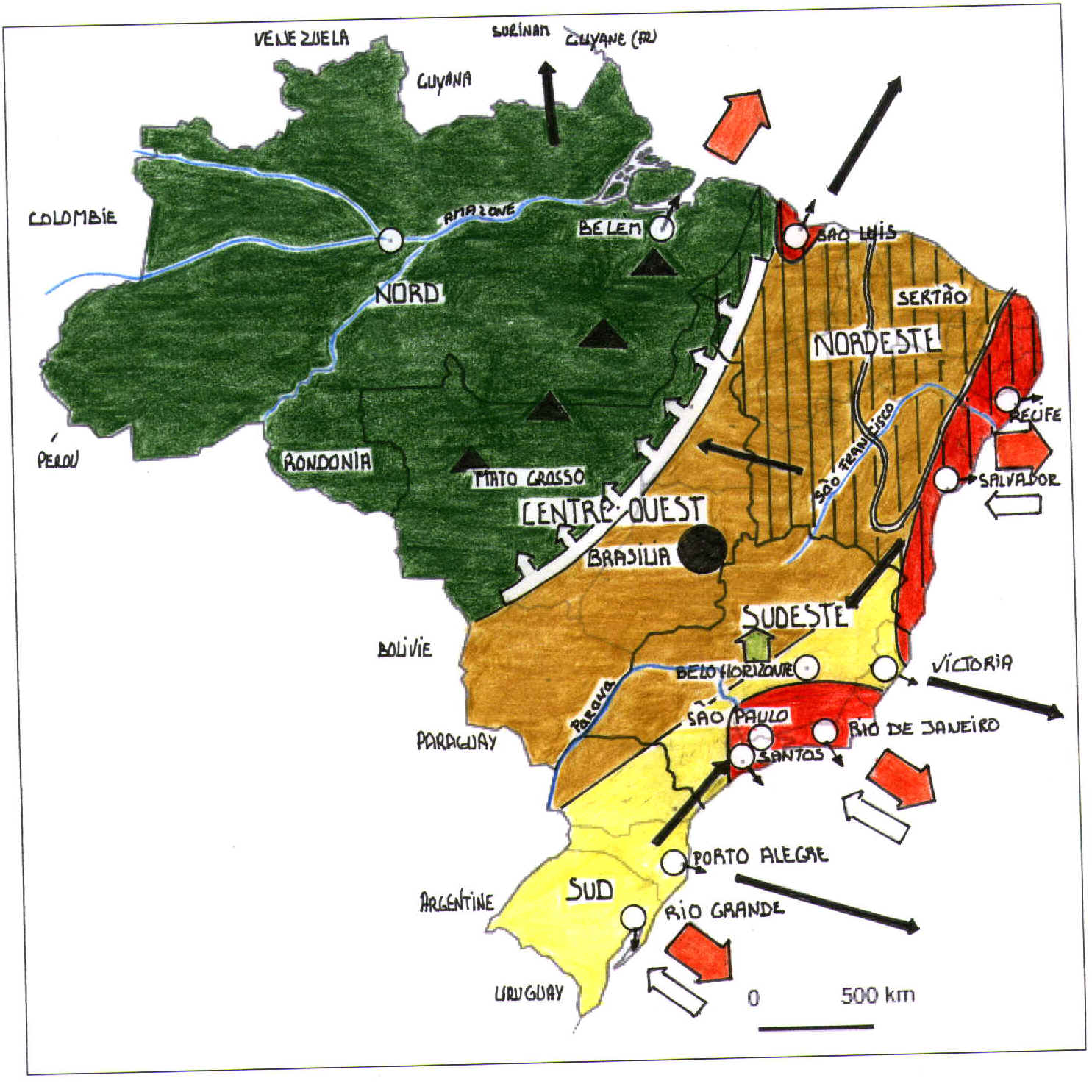 flux traduisent également l'inégal développement régional du Brésil. En dépit