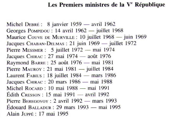 Les premiers ministres de la 5ème République.