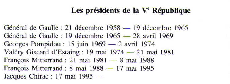 Informations auxquelles, il faut ajouter la réélection de Jacques Chirac en 2002 pour 5 ans.
